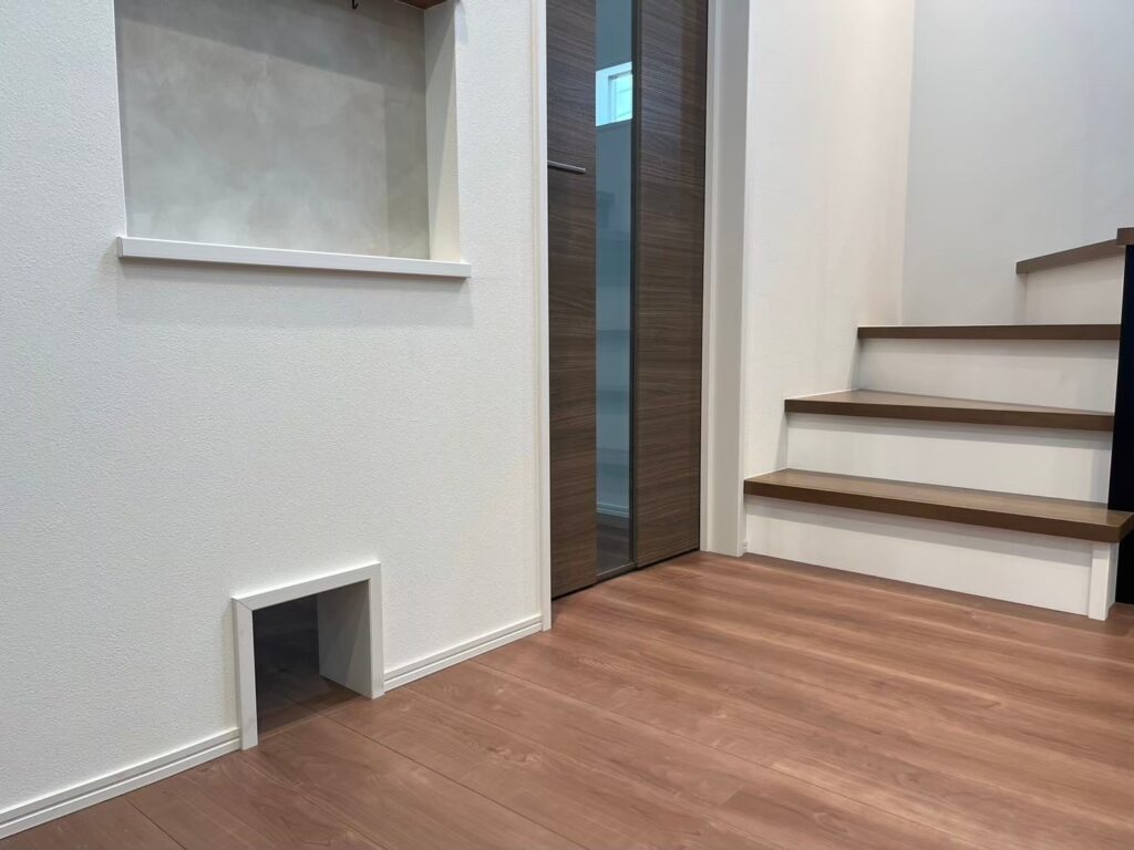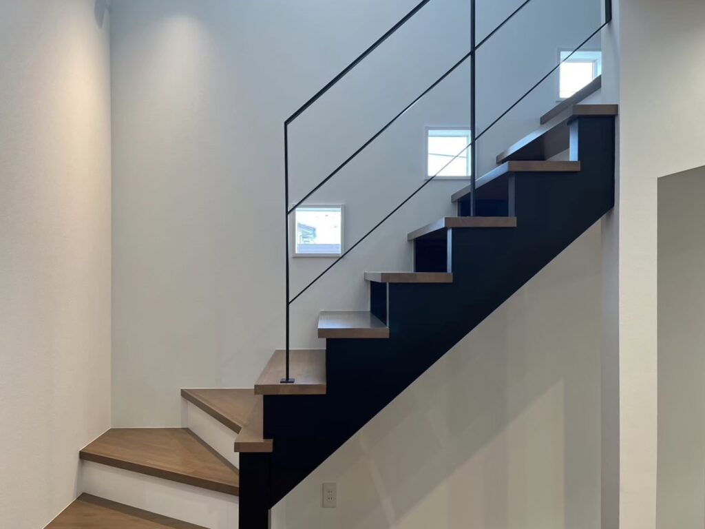 階段にも外の景色を眺められる猫目線の小窓を設置。