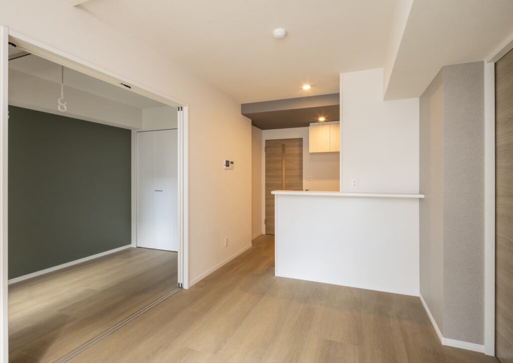 白を基調にし、建具とクロスにアクセントカラーを挿入。