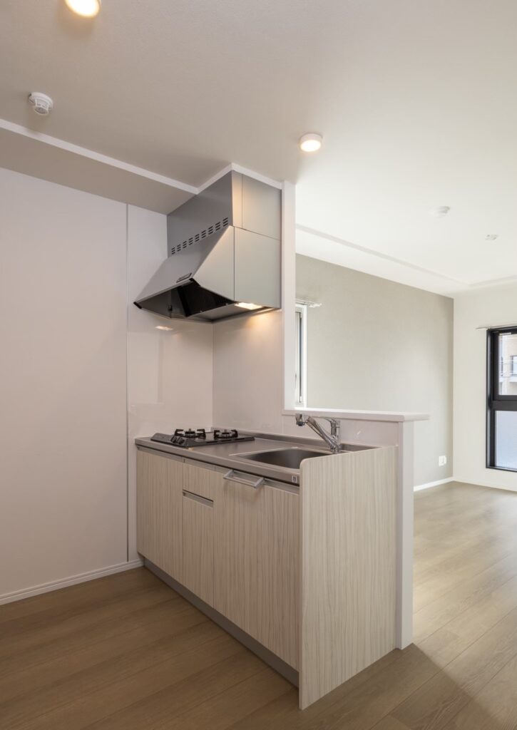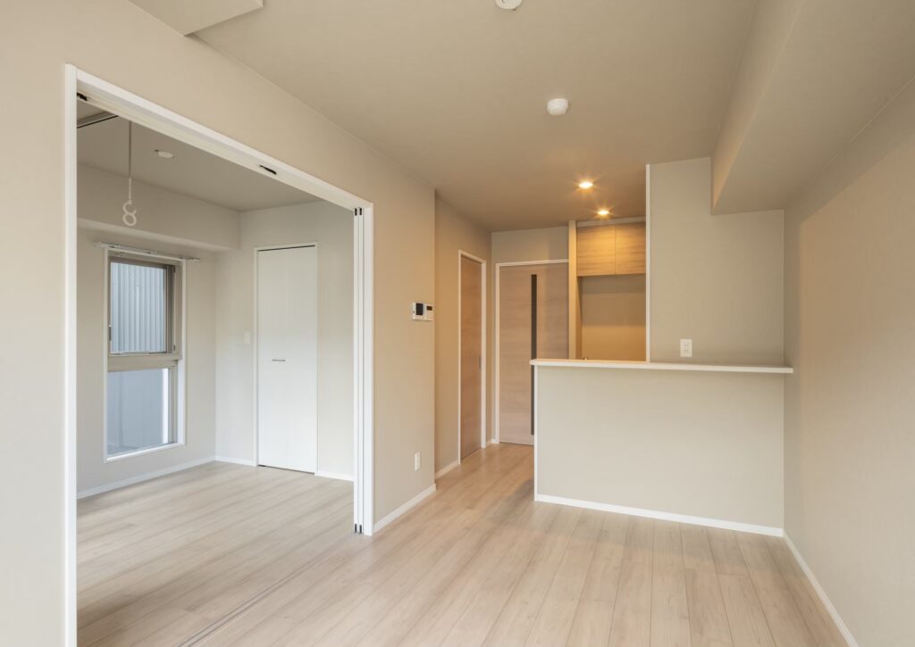 ベースカラーをベージュに統一し、建具やフロアタイルも同一の色味で合わせる。